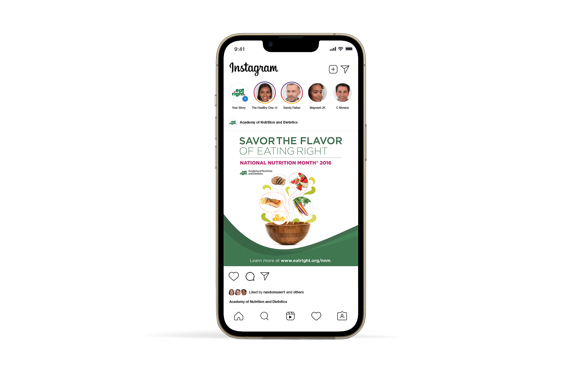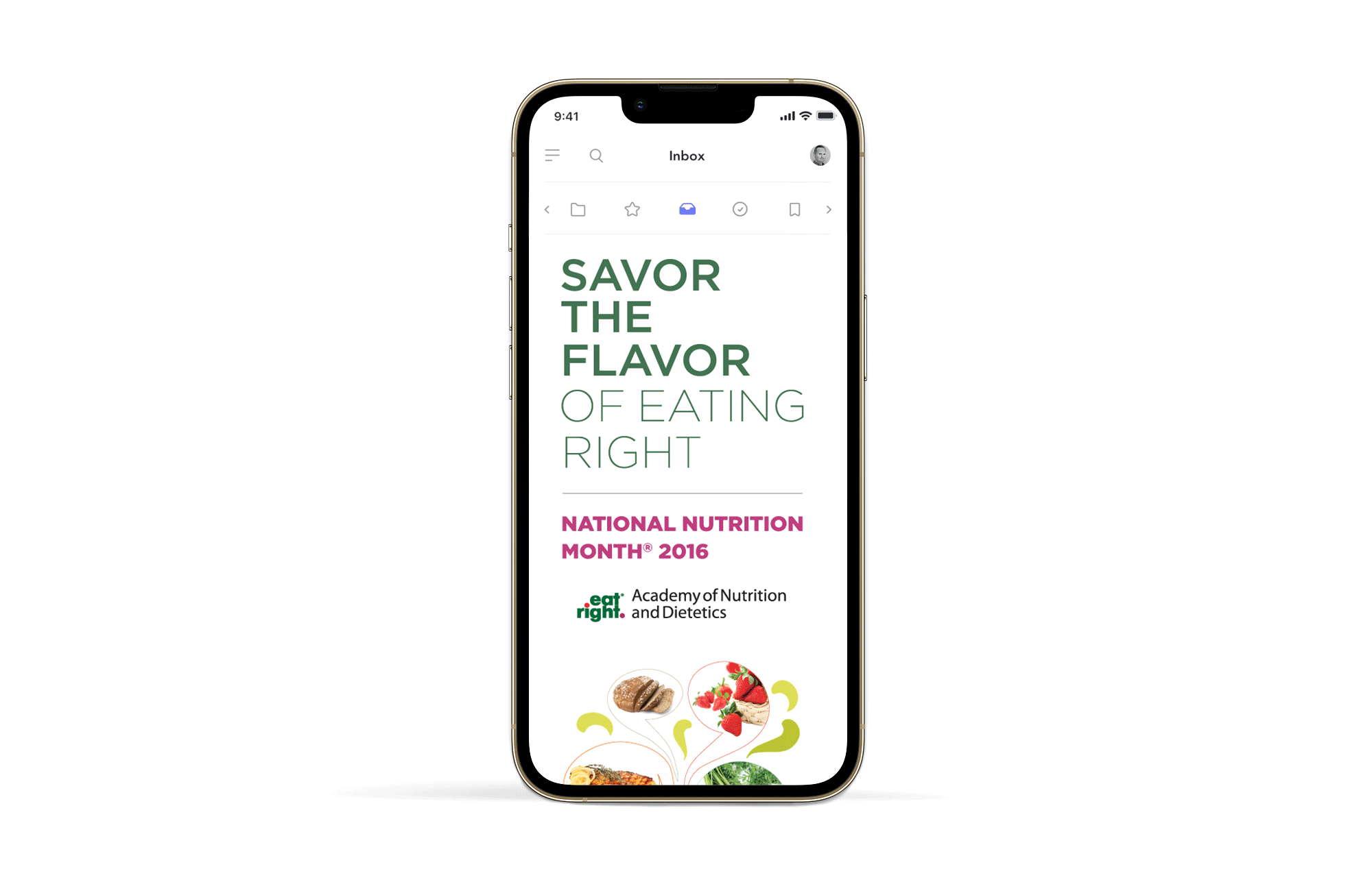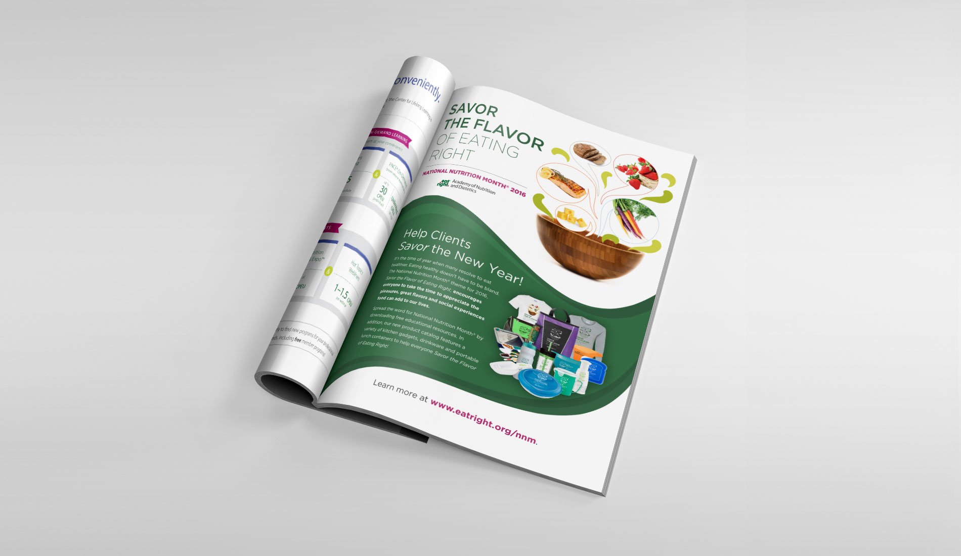 Graphic created for National Nutrition Month® 2016, the Academy of Nutrition and Dietetics’ annual nutrition education and information campaign. The graphic was then pulled through to various pieces including ads, HTML emails, social graphics, display ads, web asset images and numerous products.